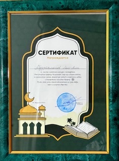30.09.2025Ученик 9 класса МБОУ «Дуц-Хуторской СОШ» Абдурахманов Лом-Али награждён сертификатом за участие в районном конкурсе, посвящённом Дню рождения Пророка Мухаммада (мир ему и благословение). За проявленное старание, творческий подход и искреннюю любовь к благородному наследию Пророка (мир ему). Пусть этот успех станет вдохновением на пути добра, веры и служения обществу!